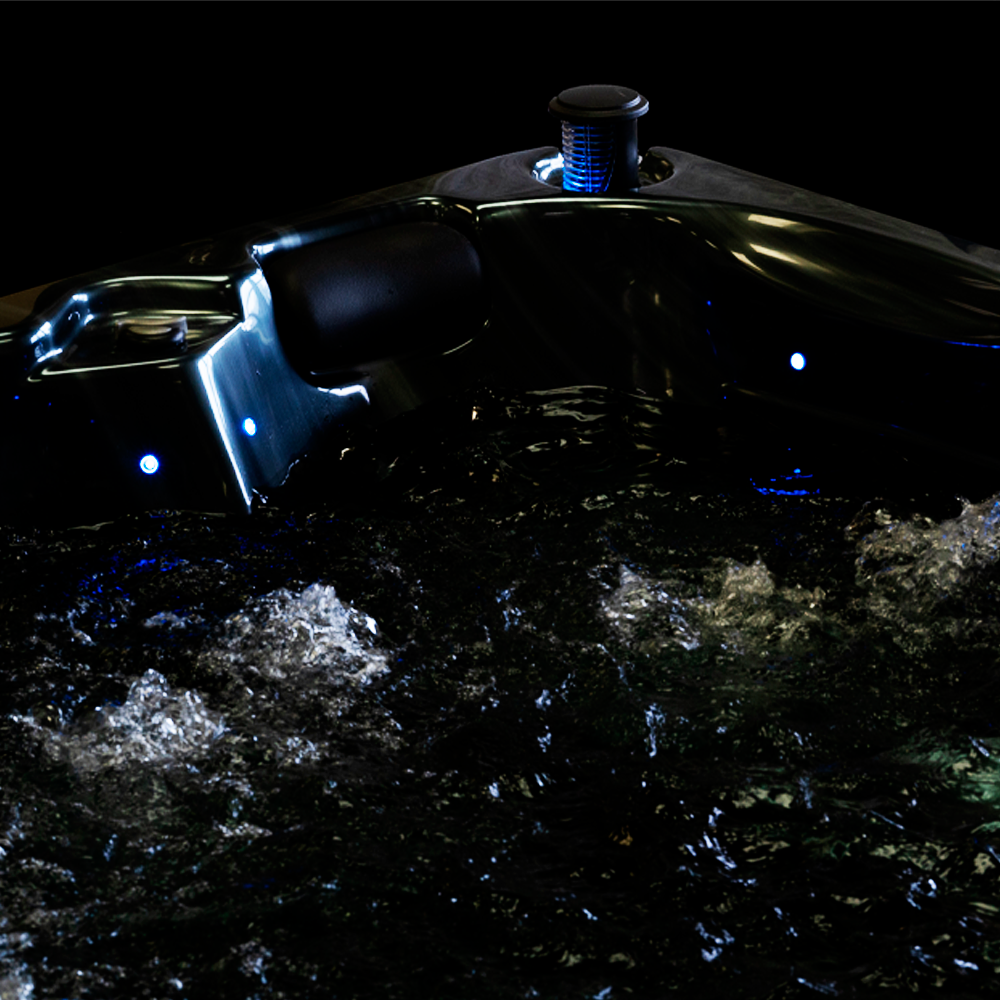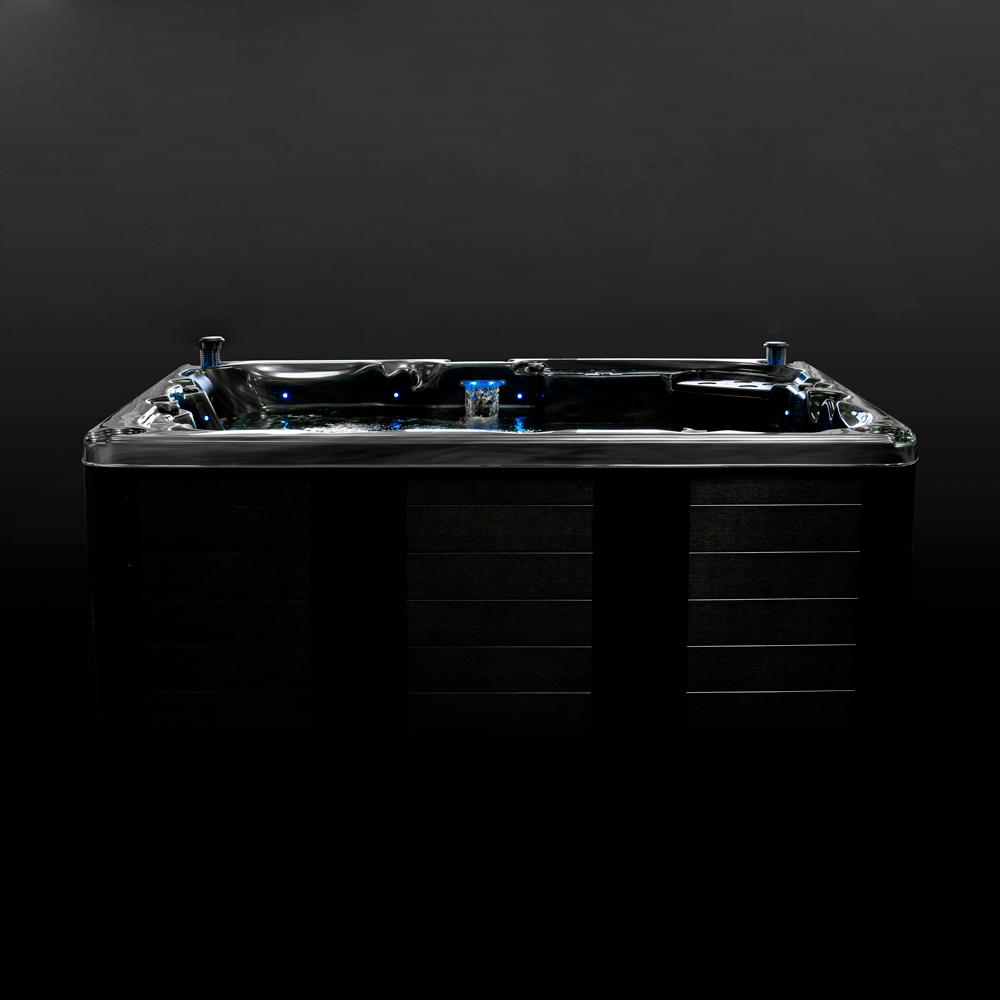 Obsidian er Danlines største 7-personers spabad (228 x 275 cm) med 85 ståldyser, 2 springvand, et vandfald, taupe-paneler, aromaterapi og imponerende belysning. De kraftige 2,5-hk pumper og justerbare håndtag giver en tilpasset massageoplevelse i en luksuriøs atmosfære.